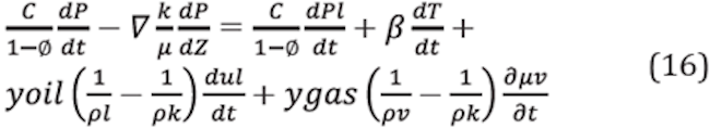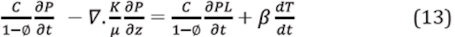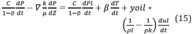 Equation 13 shows the second developed model, which includes water expansion, where β dT / dt represents the aquathermal term [7].