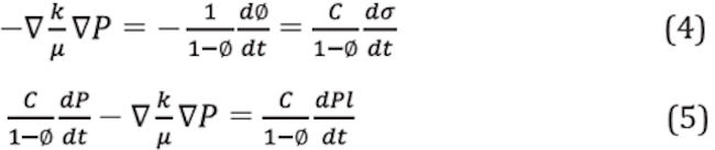 Luo and Vasseur [7] contributed, deriving the pore pressure equation by stating that the conservation of the rock material can be described using the continuity equation. With this analysis we come to Equation 2 where Vs is the speed of the rock material: