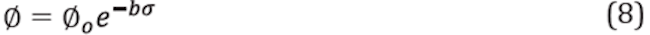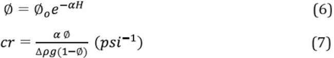 Equation 6 can only be used for areas of normal compaction where the pressure is hydrostatic; thus, Equation 8 shows a expression where the porosity is related to the effective stress [22].
