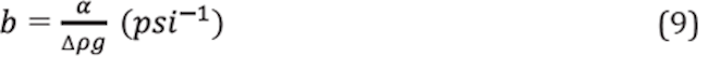 The terms are explained in the nomenclature except for the terms: porosity, compressibility, [19]-[21], as is described below.
