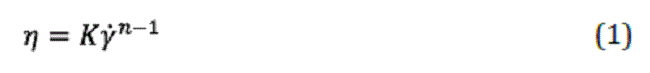 Where η is the apparent viscosity (mPa’s), K is the consistency index (mPasn), n is the flow behavior index (unit-Less) and y is the shear rate (s-1). For pseudopLastic fluids n<1, for Newtonian fluids n=1 and thickening fluids have n>1. For more viscous solutions, K is higher, and vice-versa.