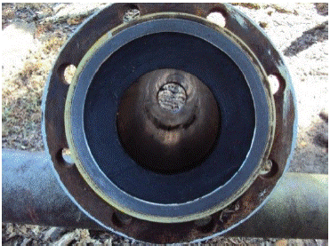 The results of the hydrostatic test in the HDPE liner system performed at 1.5 times operating pressure for 4 h showed absence of Leaks in HDPE joints. Monitoring of the HDPE liner system installed in collector line of station 3 of the Casabe field was carried out after 12 months in service, removing the inspection sections mounted. The monitoring comprises activities of cleaning and visual inspection of HDPE lining in connections or flanges and pipeline. During the visual inspection, anomalies and defects in the HDPE liner, such as leaks, blistering, signs of collapse, discoloration and accumulation of solids were not evidenced, as can be seen in Figure 6, which verifies the resistance to abrasive wear of HDPE in exposure conditions.