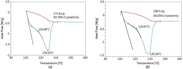 The changes in the HDPE thermal stability were determined that is, melting temperature (Tf), fusion enthalpy and crystallinity