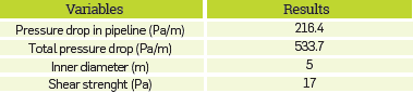 is the friction factor, D¡ is the inner diameter, and τ is the shear strength in Pa. In the friction factor a calculated value of 2.46 is assumed, with sand viscosity of 4 N/m2s and brine viscosity of 0.01 N/m2s.