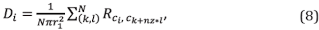 such that |(pΔz,qΔx)-(kΔz,lΔx)| ≤ r1, where N is the total number of correlation values inside the circle of radius r1.