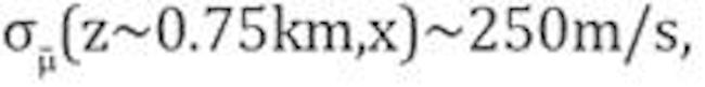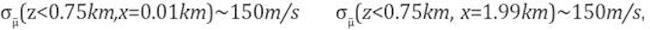 Figure 9c shows that the functional shape of σμ̅(z, x) has a global Linear growth of uncertainty. The slope for the cuts is close to 2.34s-1. Considering the detail of the fluctuations shown in Figure 9c, it is evident that the uncertainty has strong fluctuations in the region 2km < z < 2.5km, where there are strong discontinuities in the profile as observed in Figure 9a.