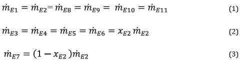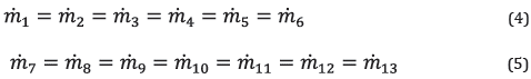 The system's mass flow rate balance equations are as follows: