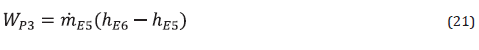 which ηP3 is the isentropic efficiency of the pump and vE5 is the specific volume at state E5.