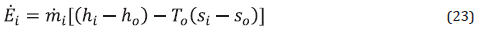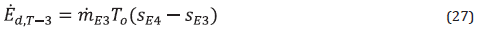 By applying Equations (12) and (23), the exergy rate destruction of