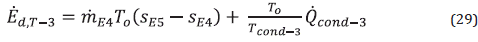 The condenser exergy destruction rate may be calculated by
