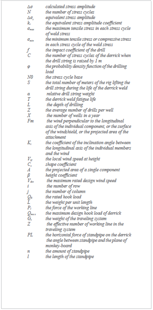 The load on the derrick and the base are unstable, and the fatigue is variable. Therefore, according to the principle of accumulated damage fatigue, it is necessary to convert the variable amplitude fatigue into equivalent normal amplitude fatigue. Equation 1 further evolves into equation 2,
