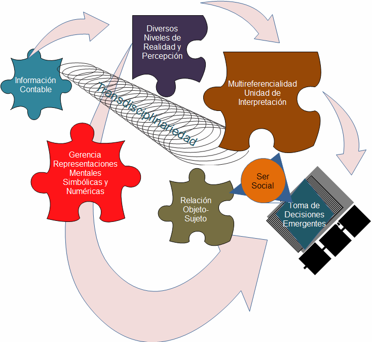 Por consiguiente, la transdisciplinariedad de la contabilidad para la toma de decisiones emergentes, representa esa posibilidad de entretejer la red de saberes concordantes y divergentes hacia la intención que nos mueve a todos los actores sociales en el marco de la transformación universitaria, que es apuntalar hacia la interpretación sistémica profunda de la realidad social bajo la plataforma de aportes de ideas que hagan posible la comunicación y organización de un sentimiento integral formativo social de sensibilidades hacia el ser humano integralmente.