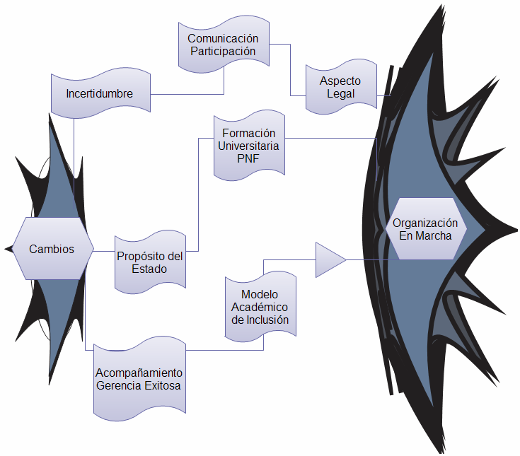 Tal como lo describe en la República Bolivariana de Venezuela la Resolución 2963 del Ministerio de Educación Superior (2008), hoy Ministerio del Poder Popular para la Educación Universitaria, en cuanto a la organización y funcionamiento de la Administración Pública Nacional, en la cual se hace referencia a la formación en el ejercicio de la ciudadanía democrática, solidaridad, construcción colectiva de saberes y la acción profesional transformadora con responsabilidad ética, se argumenta una parte del substrato legal sobre la vinculación con las comunidades y el ejercicio profesional a lo largo de todo el tránsito formativo universitario. Por su parte, la plataforma legal de la Misión Alma Mater contemplada en el Decreto 6650 (2009), garantiza entre otros, la vinculación de los procesos de formación, investigación y desarrollo tecnológico con los proyectos estratégicos de la nación, implicados dentro de la Red Nacional Universitaria. Como se observa, el compromiso de los organismos del Estado en el cumplimiento de los objetivos y en el ámbito de su competencia, para cada Programa Nacional de Formación (PNF), viene a fundamentar la generación del conocimiento en la construcción y cambio social, bajo las líneas estratégicas de un modelo académico de inclusión.