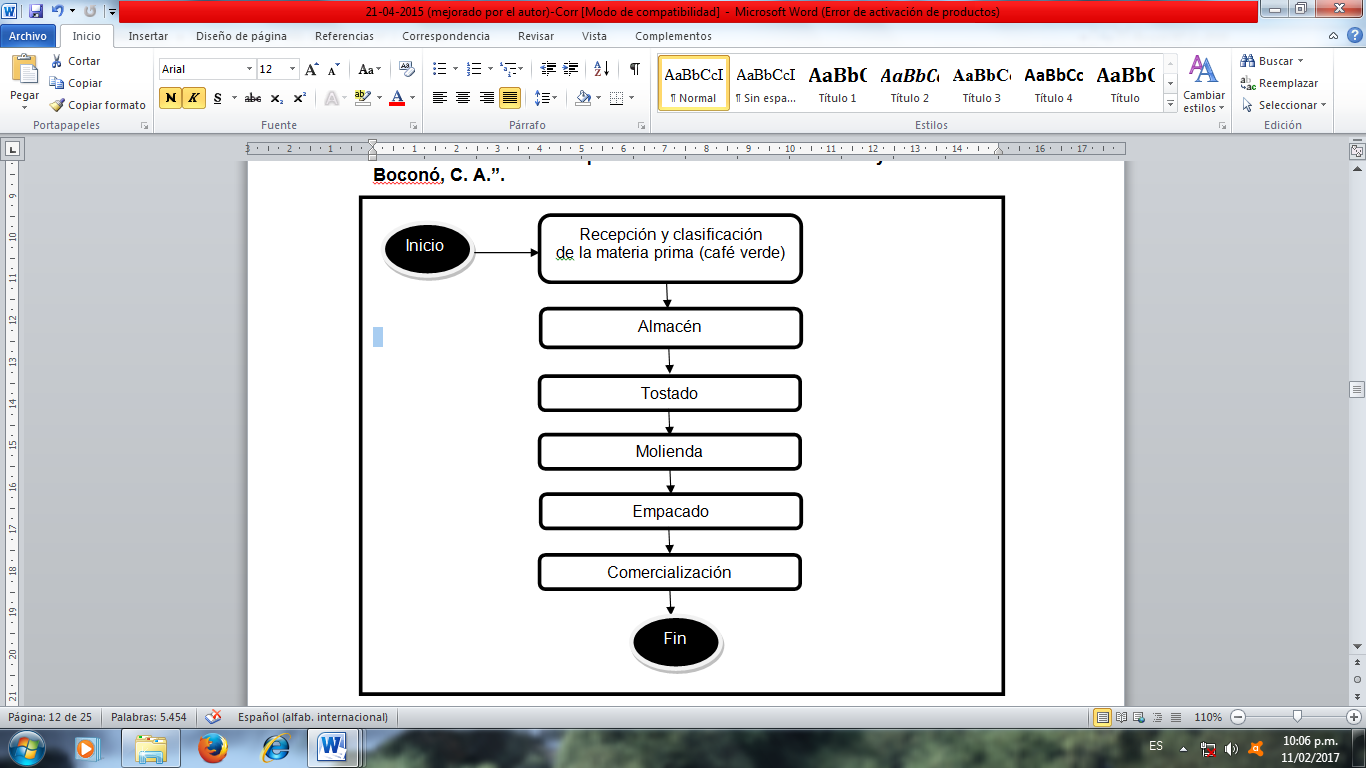 La cadena de valor no se encuentra establecida, sin embargo, la gerencia general suministró el flujograma del proceso productivo (ver Gráfico N° 1).