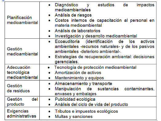 Con base en un sistema de costos medioambientales, la contabilidad patrimonial o financiera de una empresa reflejará a través de los estados financieros información vinculada con los bienes, derechos y obligaciones relacionados con la protección medioambiental, así como los gastos e ingresos derivados de la gestión medioambiental.
