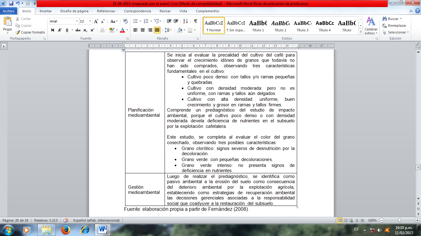 Resumen: El presente estudio tuvo como propósito presentar una aproximación de un sistema de costos medioambientales tomando como caso de estudio la empresa “Torrefactora y Envasadora Boconó, C. A.”, para lo cual se empleó una metodología de tipo proyectiva, con un diseño de campo no experimental. El instrumento de recolección de datos comprendió una (1) guía de entrevista en profundidad, aplicada a la gerencia general respectivamente. Los hallazgos encontrados develan la construcción de las herramientas para la determinación de los costos medioambientales a través de la cadena de valor de Porter y los ratios medioambientales, como modo de fortalecer el margen descrito en la cadena de valor. Asimismo, se constató que el conocimiento empírico de la gerencia les ha permitido ejecutar algunas acciones de protección al ambiente, por cuanto procuran la reutilización de la cáscara del café, como producto secundario, y procuran que el humo emanado en la etapa de tostado del café no contamine el ambiente, sin embargo, es necesario aplicar un sistema de gestión medioambiental formal para garantizar que el proceso de elaboración del café no provoque daños al ambiente y cumplir así con lo establecido por el Ministerio del Poder Popular para el Ambiente. Finalmente, se elaboró la estructura de costos medioambientales, que permiten la prevención y evaluación de la conducta empresarial frente al ambiente.