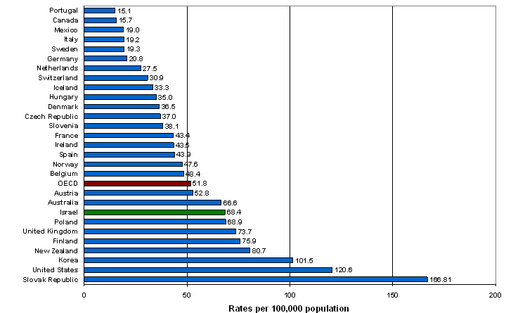 La Organización para la Cooperación y el Desarrollo Económico (OCDE), en su informe correspondiente a 2010, durante el período que va de 2000 a 2009, estima que las muertes posteriores a los 30 días de ingreso al hospital pasaron de 8,3 a 4,1 en promedio por cada 100 casos para los países integrantes.