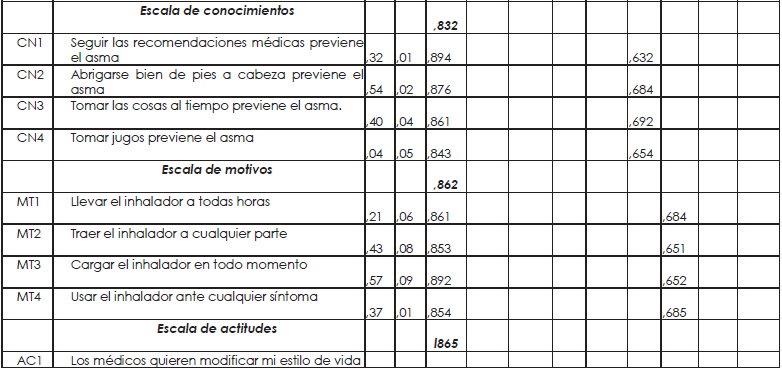 Respecto a los instrumentos, se utilizaron escalas de percepciones, normas, valores, creencias, conocimientos, actitudes, motivaciones y conducta relacionados con la adherencia al tratamiento del asma.