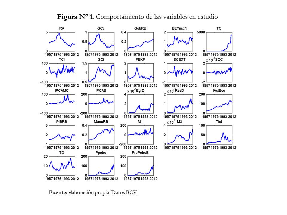 La estimación del modelo FAVAR, se realiza con 157 variables anuales para el periodo que cubre desde 1957 hasta 2012. Destacando que entre 2 y 3 factores explican más del 70% del comportamiento de las variables asociadas a la esfera de la producción; ante un choque de gasto público, la respuesta de las variables de interés dan cuenta de la dinámica caracterizada como capitalismo rentístico, aumentando la producción, las remuneraciones y presionando los precios.