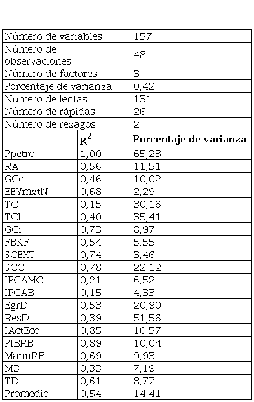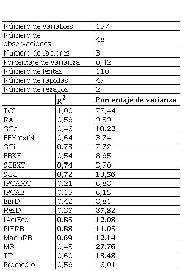 · El coeficiente de determinación, como medida de bondad de ajuste, muestra que sólo con 3 factores se captura los comovimientos de las variables asociadas a la esfera de la producción.