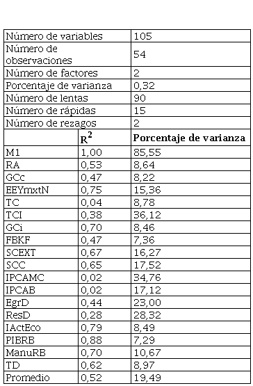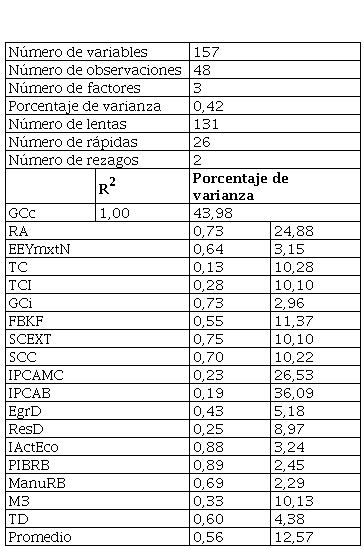 · Para explicar un porcentaje de variabilidad alto del conjunto de datos, en el sentido del análisis de componentes principales, es necesario un número alto de factores, que hace no factible la estimación del modelo FAVAR.