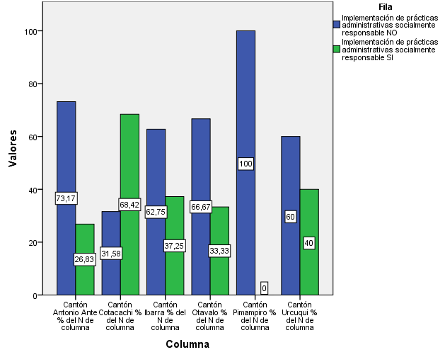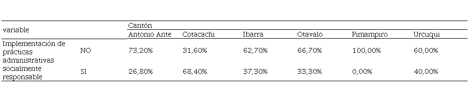 Cuadro Nº 4. Implementación de las prácticas administrativas socialmente responsables por cantones.