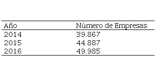 Para elaborar la tabla de proyección empresarial de Imbabura, se ha tomado en cuenta la Clasificación Internacional Industrial Uniforme (CIIU) de las Naciones Unidas, y la base de datos del directorio de empresas de los años 2014, 2015, 2016, estudio realizado por el Instituto Nacional de Estadísticas y Censos del Ecuador (INEC) como población objeto de estudio, ver (cuadro 1), estos datos históricos se proyectaron a través del método en función de la fórmula del monto sugerida por Pineda (2011) para los años 2017 y 2018 con el propósito de determinar la tasa de crecimiento, para lo cual se despeja . de la siguiente ecuación.