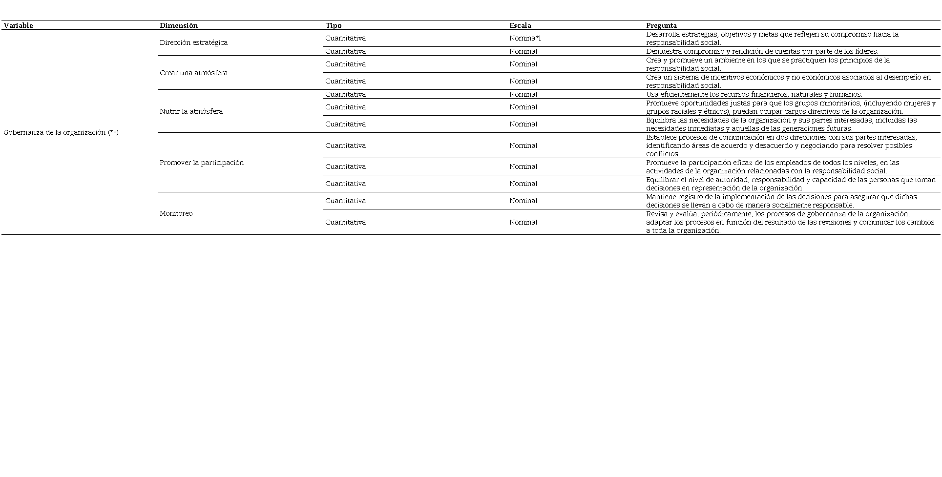 Para la presente investigación se tomó como referencia los conceptos sobre Responsabilidad Social Empresarial plasmados en las siete materias de la ISO 26000 considerando cada variable dependiente en base a cada materia como se muestran a continuación.