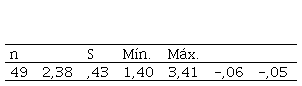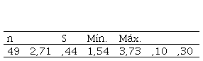 La distribución de los datos suministrados por el personal docente sobre el capital organizativo (tabla Nº 6 / gráfico Nº 1) se presentó de forma homogénea entre un valor mínimo de 1,54 y un máximo de 3,73 con una dispersión baja determinada por la desviación estándar de 0,44 alrededor del valor 2,71 de la media. El coeficiente de asimetría 0,10 y la curtosis 0,30 indican que existe una distribución casi normal de estos datos. La percepción de los profesores se ubicó en el nivel de valores bajos de la escala de actitudes, por lo que se puede aseverar que estos encuentran un capital organizativo no adecuado para respaldar el conocimiento generado desde el capital estructural.