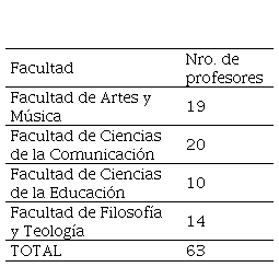 La población estuvo conformada por sesenta y tres (63) profesores de la UNICA, incluso los que ocupan cargos administrativos, suscritos a las cuatro (4) facultades que conforman la organización (ver tabla 1). Se aplicó un muestreo dirigido de voluntarios, para lo que se realizó una invitación al personal docente de participar en una encuesta sobre el capital estructural de la universidad, al llamado acudieron cuarenta y nueve (49) profesores que representan más de la mitad de la población (77,7%). Este tipo de muestreo dirigido se caracteriza por la autoselección, los sujetos consideran que conocen o tienen la experiencia sobre el tema que se consulta (Morse, 1991).