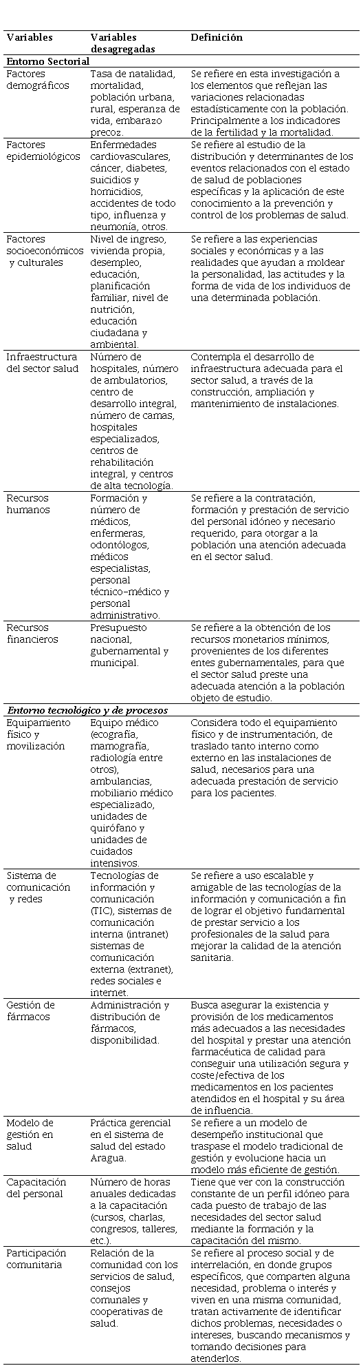 Política: al ser instituciones públicas, las políticas del sector salud deberán favorecer las inversiones en vivienda, servicios públicos, recurso humano, capacitación en programas de enfermedades endocrinas, metabólicas, cardiovascular, oncológica e infecciones de trasmisión sexual. A su vez, deben favorecer la eficiencia en los procesos administrativos para la rápida asignación de recursos que ayuden a potenciar el sistema tecnológico de las redes y de los equipos para el manejo de la información asistencial y administrativa, todo esto aunado a un plan nacional de salud que responda a lo establecido en la ley.