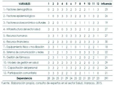 Matriz de relaciones lógicas de influencia–dependencia de variables