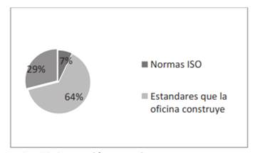 En cuanto a la dimensión de estudios que considera los elementos de evaluación de la administración verde, Coulter y Robbins (2010) afirman que para evaluar el desarrollo de la misma se valen de dos indicadores como son las normas y los informes; en este sentido los resultados respecto a las normas permiten observar que en las oficinas se implementan normas en materia ambiental, pues el 64% de los encuestados respondieron que implementan estándares que la oficina construye para mantener el comportamiento ambiental, un 29% que no aplican ninguna de las opciones y el 7% de los encuestados dicen implementar normas que vienen dadas por estándares desarrollados por la Organización Internacional para la Estandarización (ISO). Es preciso acotar que es considerable el porcentaje de Contadores que aplican normas ambientales dentro de las oficinas, lo cual está en concordancia con la teoría de Coulter y Robbins (2010) quienes sugieren que la aplicación de las normas en la administración ambiental es un concepto integral dentro de una organización, por lo tanto involucra a todas las áreas que la integran del ámbito de su competencia en la propia organización. Es de resaltar que la no aplicación de normas puede derivar en mayor consumo de materiales como papel, tintas de impresión que tienen un costo para el medio ambiente; derivar en derroche de recursos como energía eléctrica, agua; además de crear en los empleados y clientes poca conciencia ambiental, por la propia inexistencia de normas.