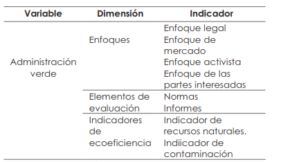 Palabras clave: administración verde, elementos, indicadores de ecoeficiencia.
