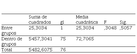 Al evaluar los resultados del ANOVA, con énfasis en la media de la utilización de las tácticas políticas, para el caso de los hombre y mujeres, se procedió a rechazar la hipótesis de igualdad de medias, ya que el nivel de significación p= 0,50 >0,05, por lo tanto, se asume la igualdad de medias en los promedios de las puntuaciones totales entre el grupo de los evaluados por género. Dado que todas las variables analizadas son homogéneas entre sí, se infiere que las tácticas políticas usadas por los hombres y las mujeres para ocupar cargos directivos son iguales.