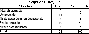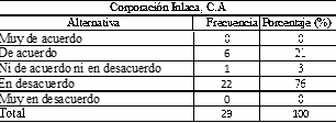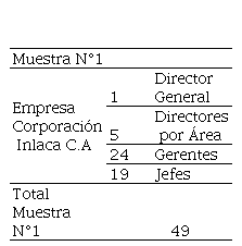 Cuadro N° 1. Muestra de Corporación Inlaca, C.A.