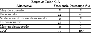 Se evidencian deficiencias en Corporación Inlaca. C.A debido a que posee una red de distribución con características particulares, haciendo que en ocasiones los productos no sean accesibles a toda la población, mientras que, para los encuestados de Empresas Polar, C.A. los procesos de la compañía son altamente adecuados, ya que cuentan con una red de distribución adecuada, que permite la presencia permanente de sus productos en el mercado (Cuadro N° 8).