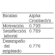 Para medir la confiabilidad como propiedad métrica de los instrumentos, construidos como escalas de medición de las variables a estudiar (nivel de motivación, de satisfacción y de desempeño laboral), se utilizó la medida de consistencia interna basada en el estadístico de Alfa o modelo de consistencia interna de Cronbach. Con dicha medida de consistencia se aseguró que los instrumentos utilizados en la investigación estuvieran libres de errores aleatorios y que los resultados arrojados fuesen consistentes.