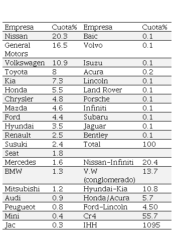 Concentración de mercado y desempeño de la industria automotriz en México