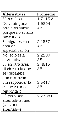 En el momento en que se les preguntó sobre su visión de las alternativas del mercado laboral mientras estaban vinculados a otras organizaciones, los encuestados presentaron diferentes percepciones, como se muestra en la Tabla Nº 4.