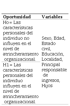Cuando se realizaron las pruebas de hipótesis, se halló que las características personales de los individuos no interferían en el nivel de Atrincheramiento Organizacional. Solo existen diferencias en los promedios de las dimensiones de Ajuste de Posición Social (APS) y Limitación de Alternativas (LA) de los trabajadores que residen en las ciudades del interior del estado y de los que residen en la ciudad capital, estos últimos individuos ven más oportunidad y se preocupan menos por el statusen la empresa.