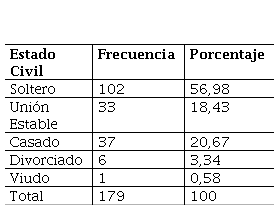 En cuanto al estado civil de los encuestados en el estudio, se identificaron los siguientes datos, como se describe en la tabla Nº 1.