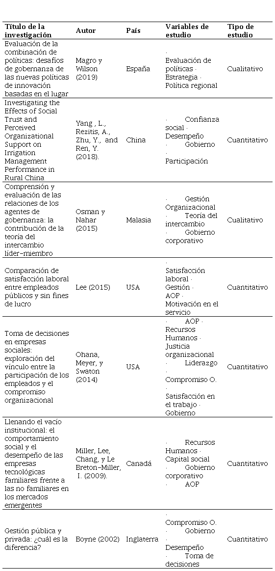 3.1. Revisión de las variables relacionadas con el apoyo organizacional percibido y la gobernanza