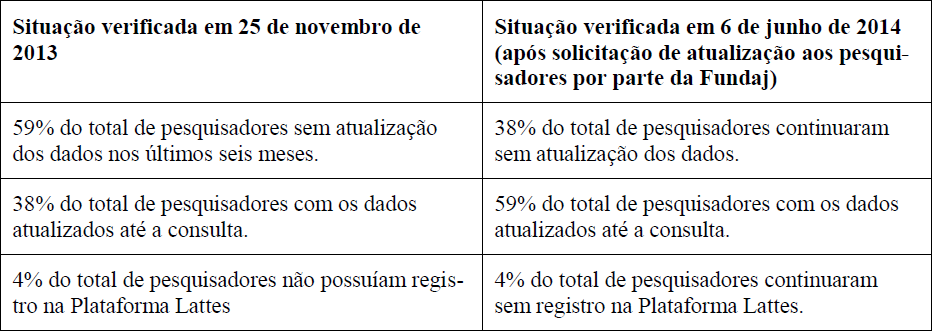 É utilizado pela maioria das instituições de pesquisa no país, se firmando como uma importante base de dados sobre a atividade científica no Brasil. É uma ferramenta que pode ser usada para dar visibilidade institucional a partir do potencial de profissionais da ciência que a instituição apresenta, como pode ser observado no Quadro 1, em relação à Dipes/Fundaj.