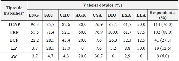Os participantes também foram inquiridos sobre o tipo de trabalho que costumam apresentar em eventos, e a Tabela 6 apresenta os resultados obtidos dentre as cinco opções apresentadas.
