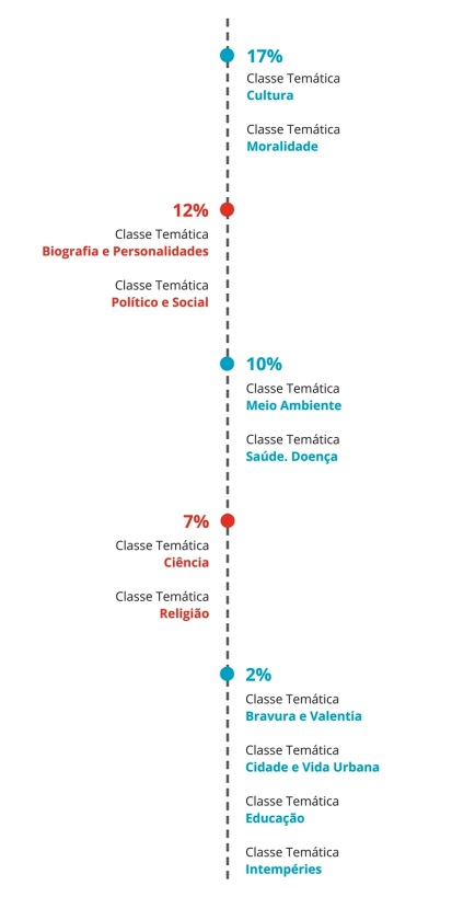 Ao apresentar este último gráfico, foram identificados 28 (vinte e oito) diferentes temas contidos em 12 (doze) classes temáticas das 27 (vinte e sete) presentes na pesquisa de Albuquerque (2011).