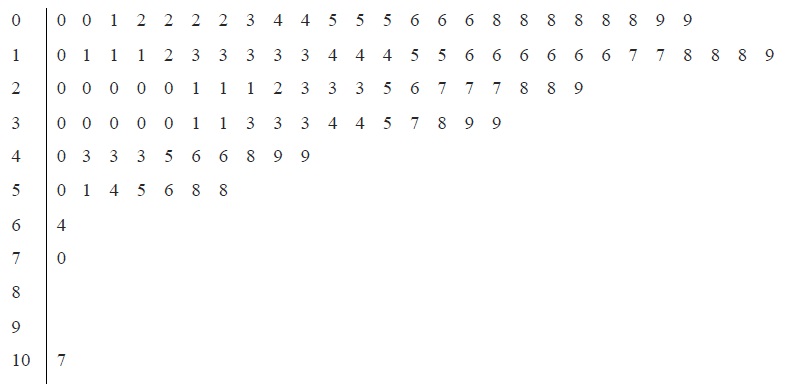 Com base nos dados acima, realiza-se o diagrama de ramo e folhas simplificado da Figura 7.
