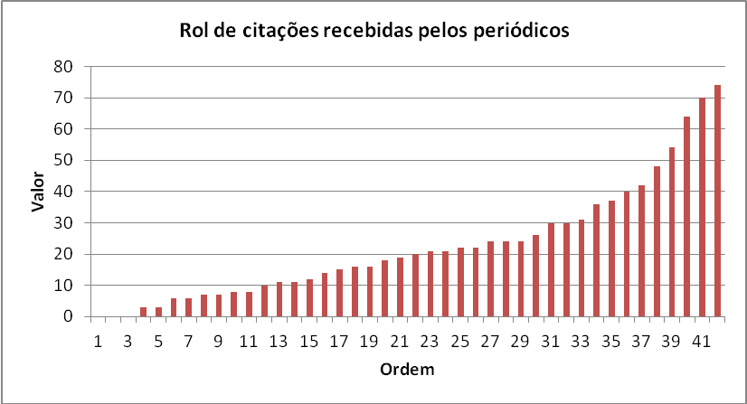 Já Santos (2010), em seus achados sobre periódicos científicos indexados na SciELO Brasil nas áreas de Ciências Sociais e Humanidades, detectou outliers para os seguintes dados: número de artigos publicados, quantidade de fascículos publicados, citações concedidas, citações recebidas, vida média dos periódicos, fator de impacto e número de acessos.