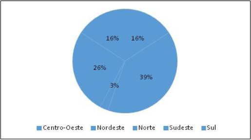 Os resultados apresentados refletem a análise dos dados coletados na base referente aos grupos de pesquisa do CNPQ, assim como, nos anais do ENANCIB, de 2005 a 2015. Dos 38 grupos observados, obteve-se a distribuição dos mesmos por região do Brasil, demonstrada no gráfico 1: