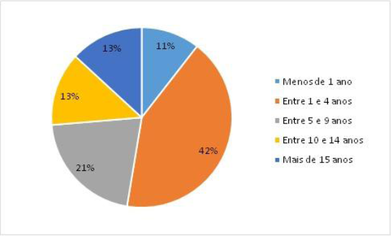 Além disso, outras pesquisas mostraram a tendência na formação de novos grupos na área da Ciência da Informação, o que também foi observado neste estudo, visto que a maior parte dos grupos de pesquisa analisados encontra-se com tempo de existência entre 1 a 4 anos, o que leva a inferir que são grupos que buscam firmar-se dentre os já consolidados e refletem, outrossim, a formação de novos pesquisadores e a expansão da pós-graduação na área, em especial, em regiões fora do eixo Sul-Sudeste, a exemplo da região Nordeste.